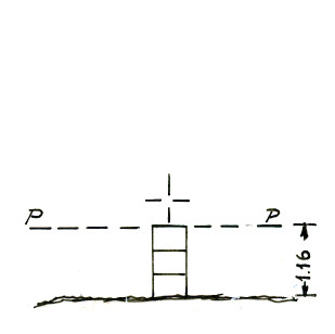 Segnale sulla vetta rocciosa. Pilastrino in ferro. Asse geometrico del pilastrino.