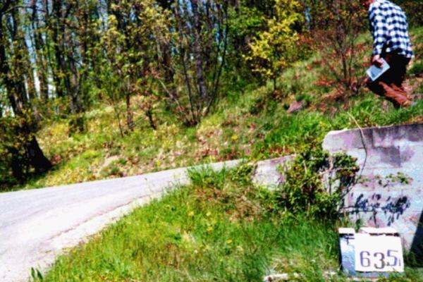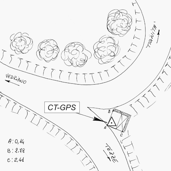 | materializzazione | Centrino metallico infisso sullo spigolo della platea della pendilina della fermata dell'autobus n. 238, a circa 300 metri dal centro abitato di Vedriano. |