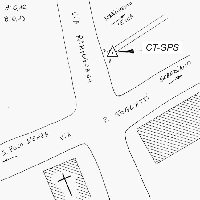 Centrino metallico infisso sul muro di delimitazione dell'area d'ingresso allo Stabilimento Elca, situata presso l'incrocio fra Via Rampognana e Via P. Togliatti, nella zona artigianale di San Polo d'Enza.