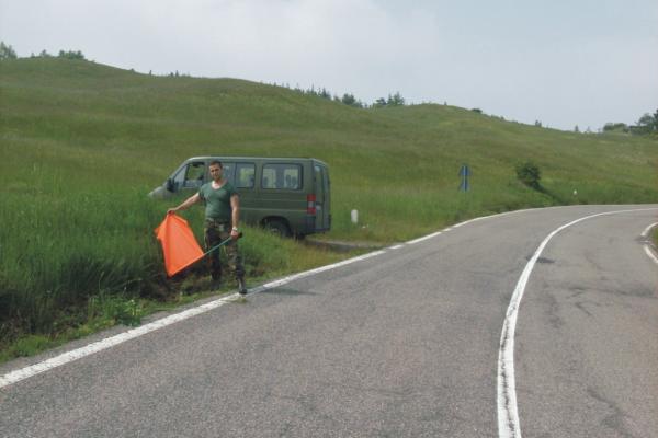 | materializzazione | Centrino metallico infisso sul muretto in cemento armato della scolina stradale lungo la S.S. 62 in prossimità del Km 68,400. ( A=spigolo cippo 13,30; B=spigolo cippo 3,96 ). |
