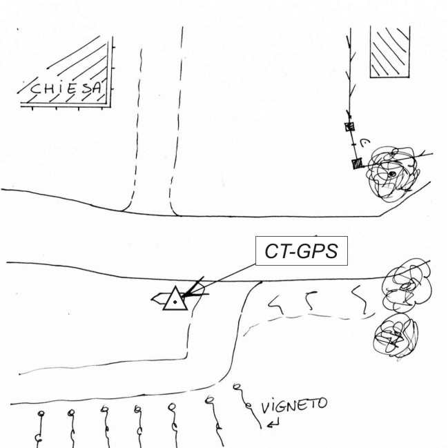 | materializzazione | Centrino metallico infisso su blocco in cemento armato presso l'accesso a stradello campestre che si trova in prossimità del paese di Neviano De' Rossi sotto la chiesa. |