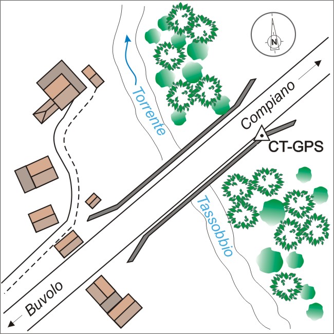 | materializzazione | Centrino metallico infisso sul cordolo (spigolo nord est) del ponte sul torrente Tassobbio della S.S. 513. |