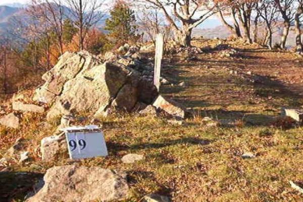 | materializzazione | Centrino metallico infisso su roccia affiorante. |