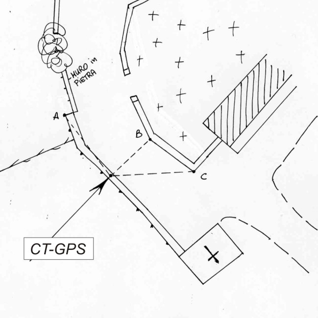 | materializzazione | Centrino metallico infisso sul muro di sostegno prospicente il cimitero di Alpe posto sopra il paese. A=7,13; B=3.83; C=9.00 |