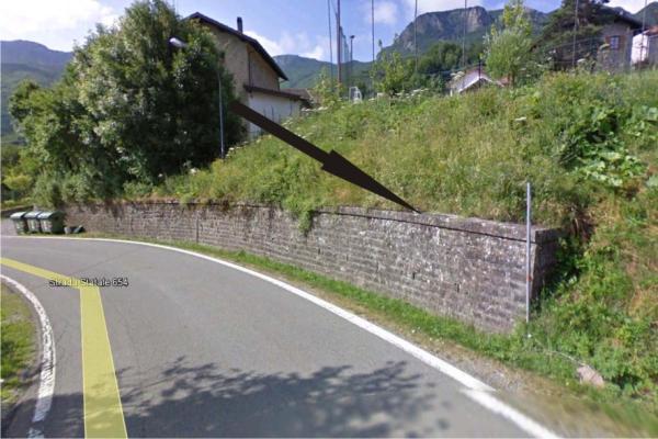 Centrino metallico infisso sul muro di sostegno della S.P. 654 Val di Nure nel comune di Ferriere, località Selva di fronte al civico 48.