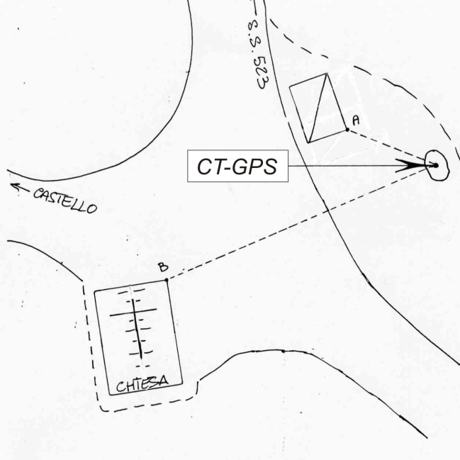 | materializzazione | Centrino metallico infisso su roccia affiorante nei pressi della chiesetta in località Castello presso il bivio della S.S. 523. A=11,65, B=22,00 |