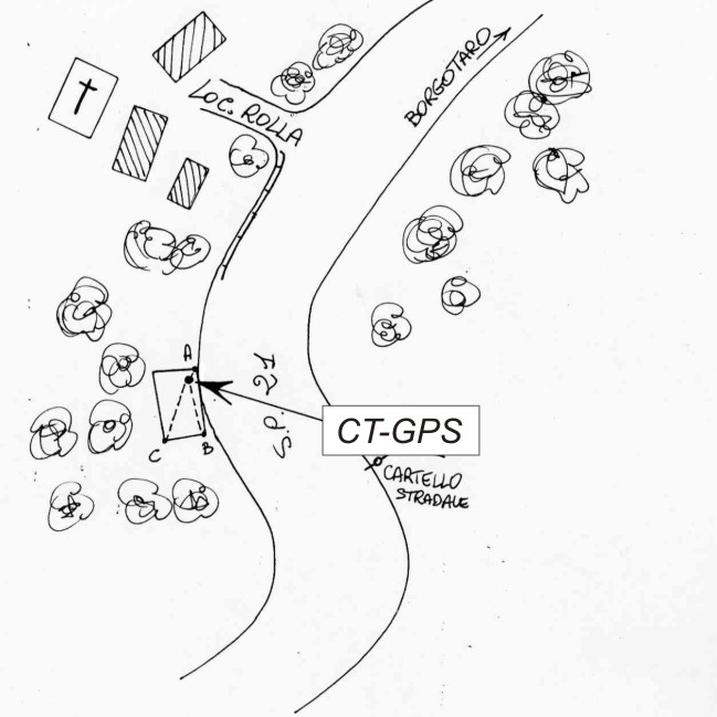 Centrino metallico infisso sul basamento in cemento armato posto lungo la S.P. 21 vicino allo svincolo per Località Rolla.