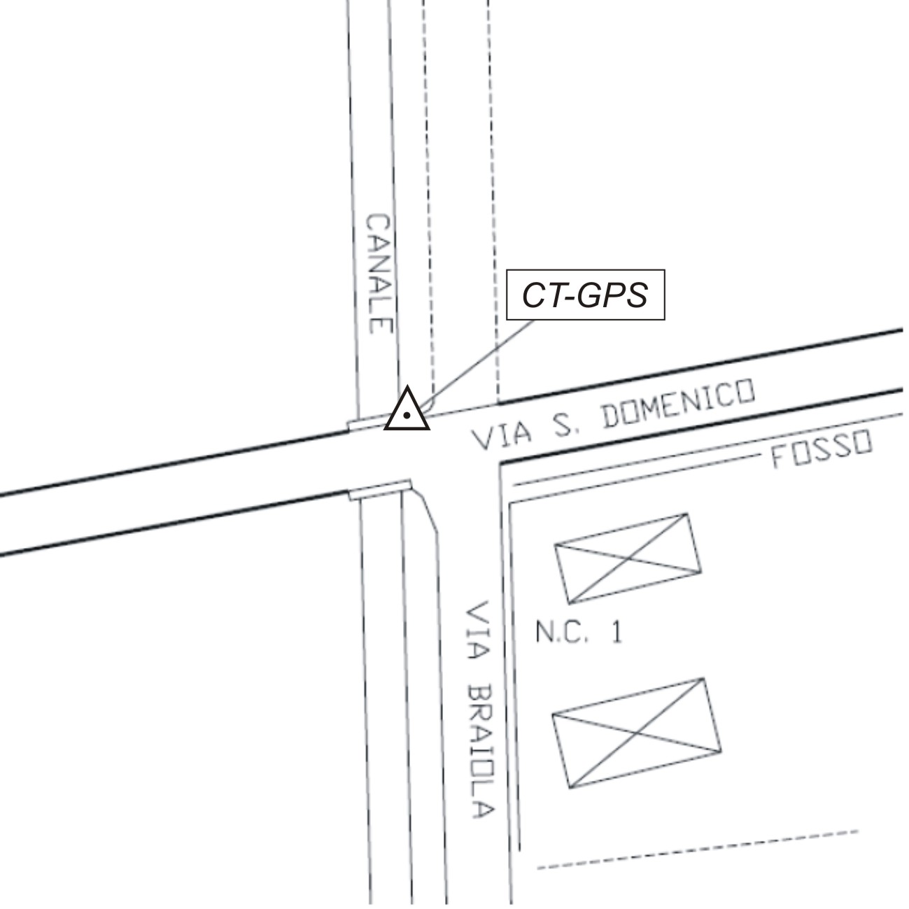 Centrino metallico infisso sulla spalla in mattoni con cordolo in cemento del ponte di Via Braiola (civico 1) sul Condotto Monestirolo.