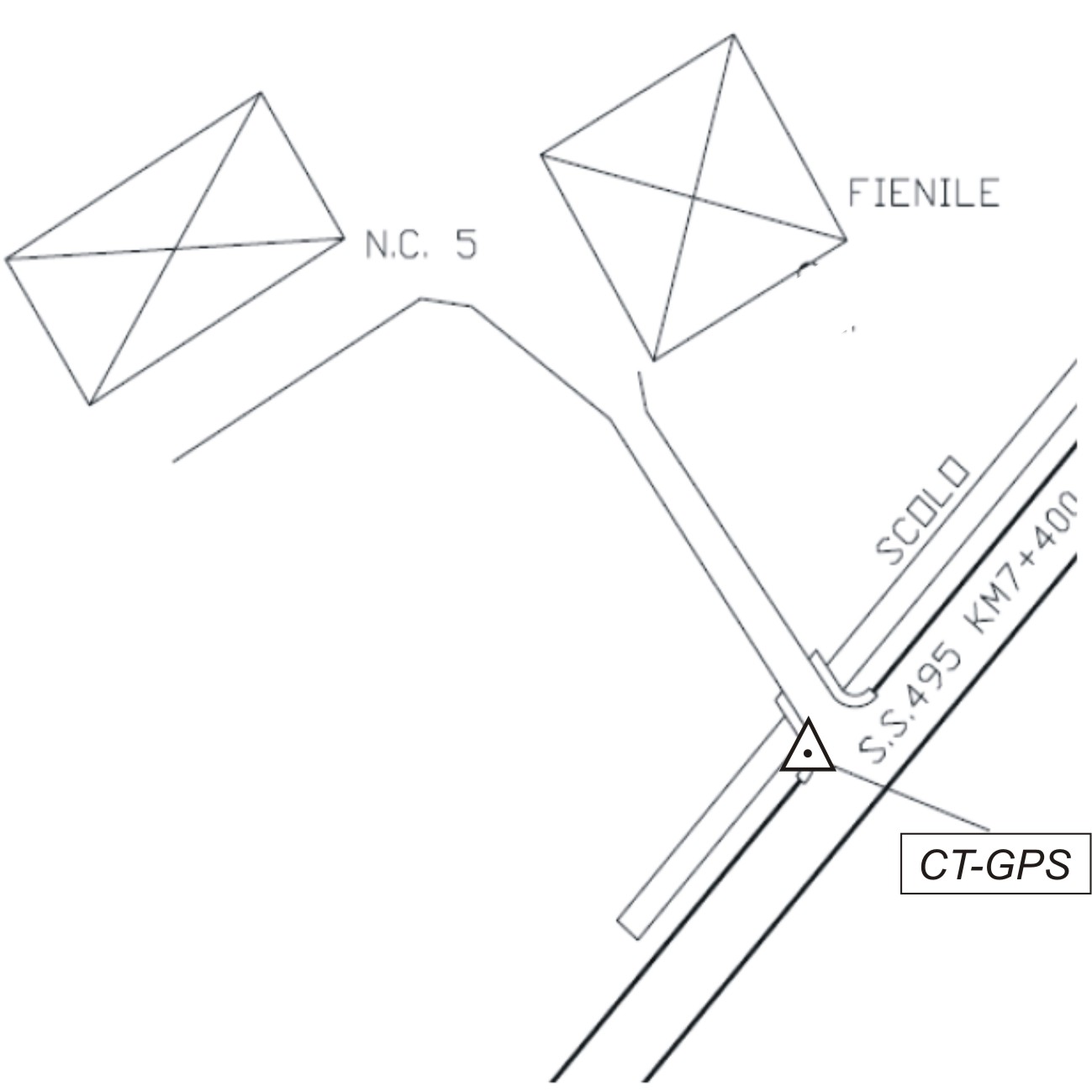 | materializzazione | Centrino metallico infisso sulla spalla in mattoni di ingresso al numero civico 5 al km 7,400 della S.S.495. |