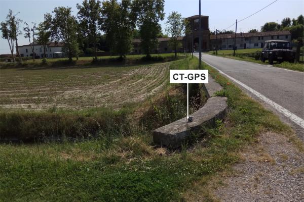 Centrino metallico infisso sulla spalla in cemento del ponte sul Condotto Berlinguardo presso Via Belvedere 1.