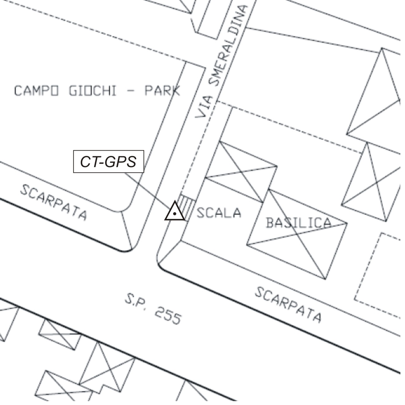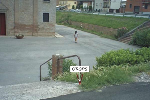 Centrino metallico infisso sul gradino superiore della scalinata di accesso al piazzale della Basilica di Cassana.