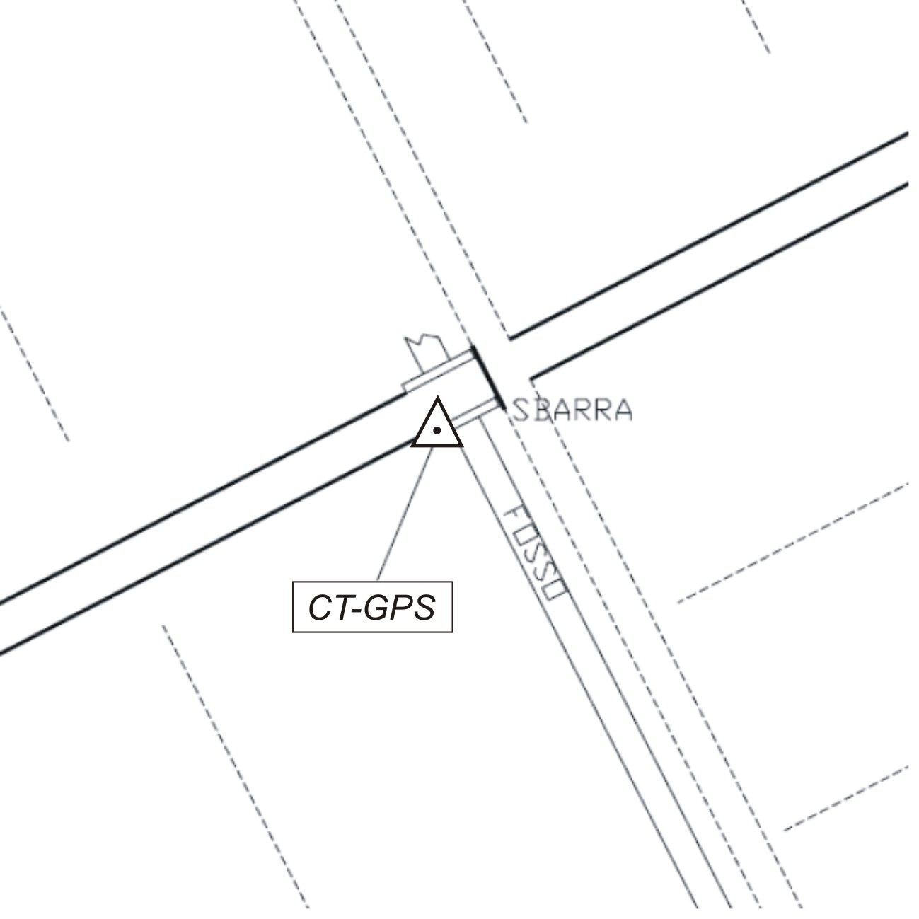 | materializzazione | Centrino metallico infisso sulla spalla in cemento del ponticello sul canale con sbarra in Via Avellina. |