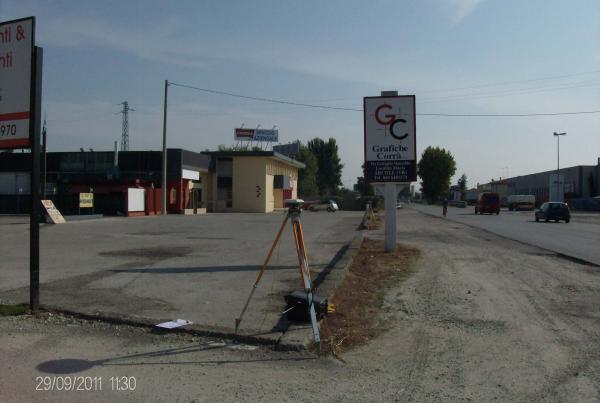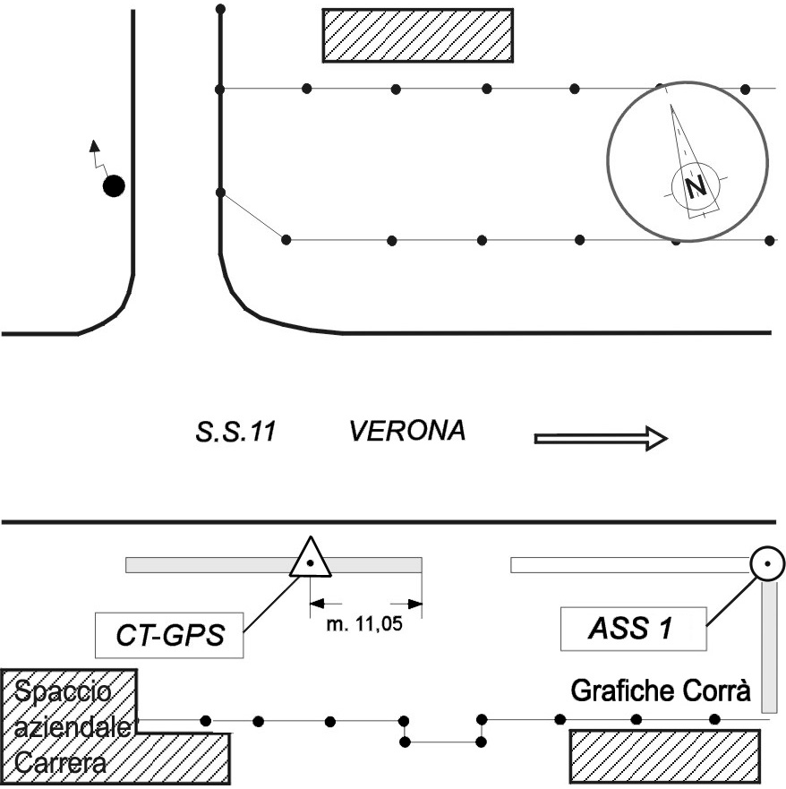 | materializzazione | Centrino universale infisso nel cordolo che delimita la sede stradale dal parcheggio di fronte all'ingresso delle Grafiche Corrà; posto a destra della S.S. 11, in direzione di Verona, al chilometro 324 circa in località San Bonifacio. |