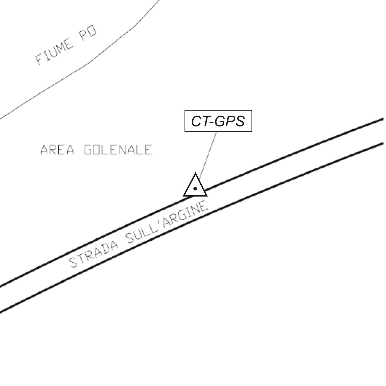 Centrino metallico infisso sulla sommità di un pilastrino sull'argine, a 50 metri a nord-est dall'asta idrografica.