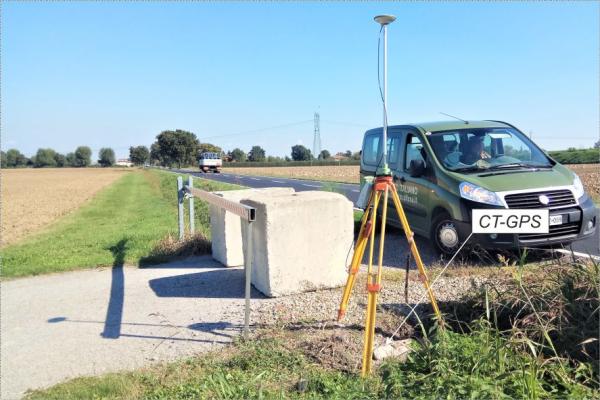 Centrino in acciaio inox GPS del tipo C infisso sul muretto di un ponticello.