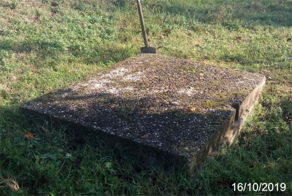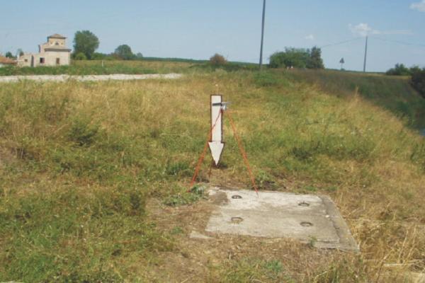 | materializzazione | Centrino metallico infisso nella corona in cemento dell'impianto di una piccola idrovora. |