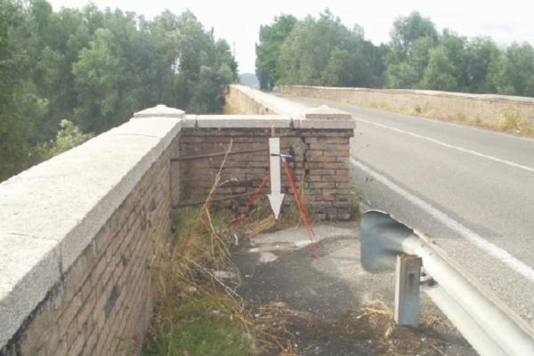 | materializzazione | Centrino metallico infisso sulla base in cemento su ponte. |