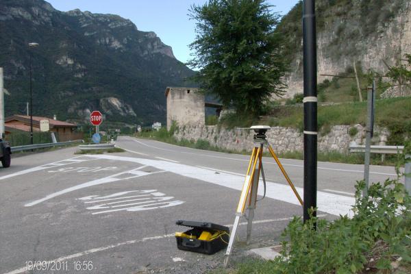 Centrino universale infisso nella soletta in cemento armato di un palo per l'illuminazione stradale, al bivio per Ossenigo al Km 324,950 della S.S. 12.