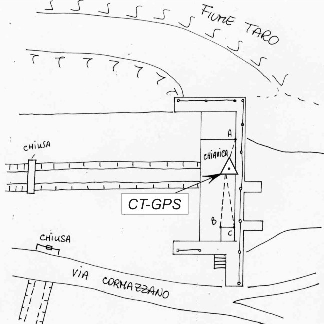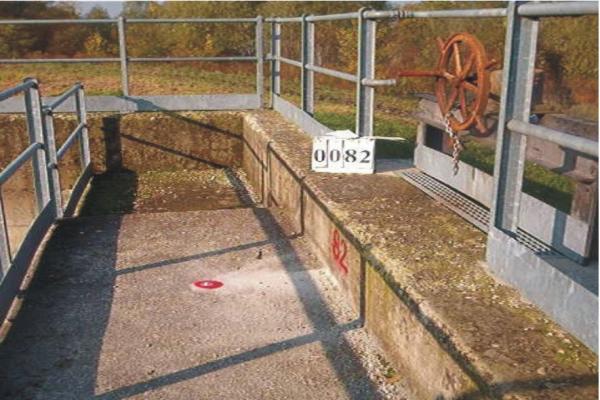 Centrino metallico infisso sulla sommità della chiavica del fiume Taro sita in Via Cormazzano.