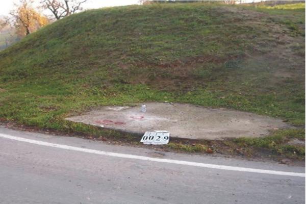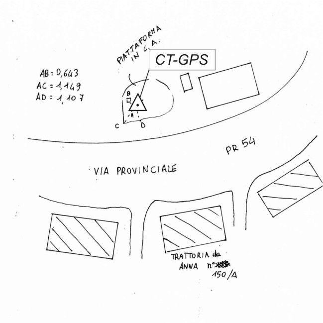 Centrino metallico infisso sulla piattaforma in cemento armato sito in Via Provinciale di fronte al numero civico 150/A (Trattoria Anna).