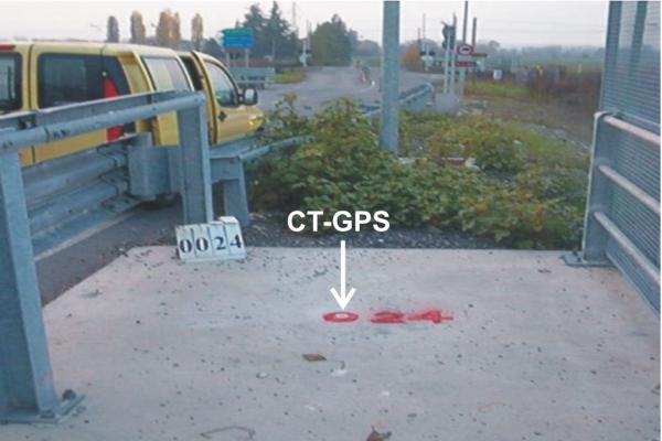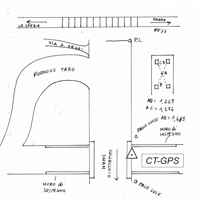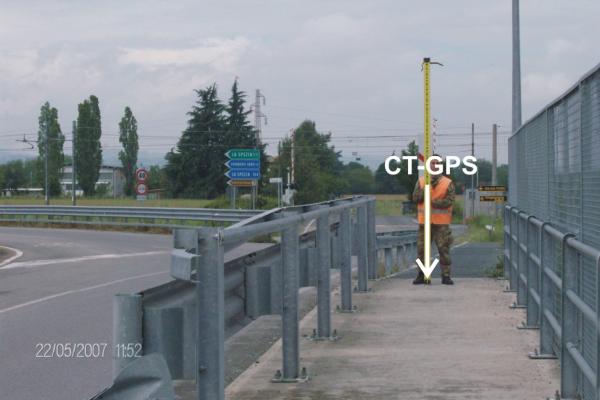 Centrino metallico infisso sul marciapiede del ponte sito tra lo svincolo della strada SNAM e quella che porta a Fornovo (A15), nei pressi di Via A.Megri.
