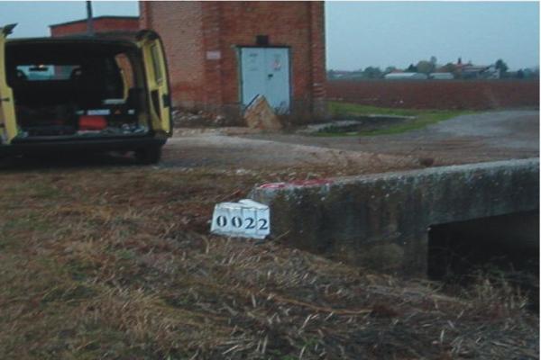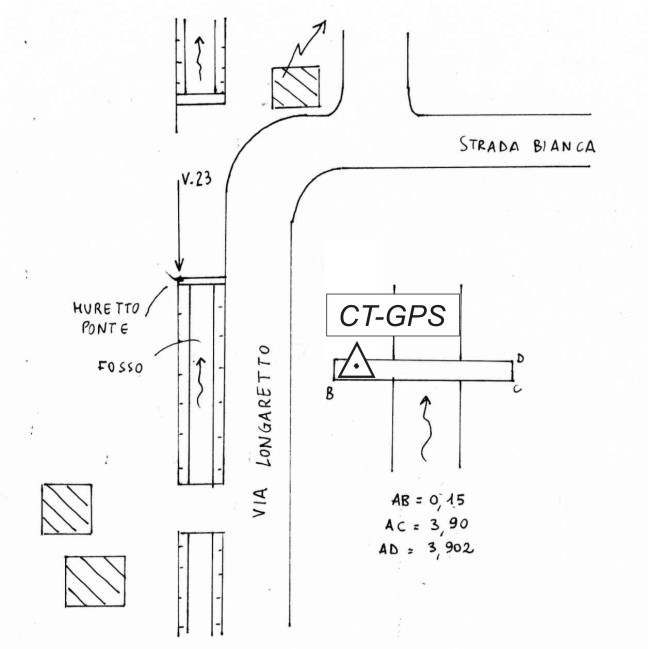 | materializzazione | Centrino metallico infisso sul muretto del ponticello sito in via Longaretto, vicino alla cabina ENEL. |