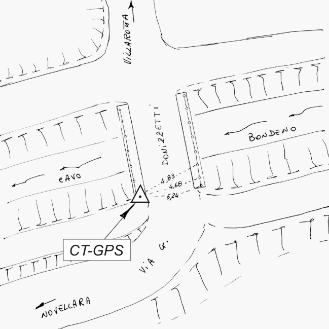 | materializzazione | Centrino metallico infisso sul ponte del Cavo di Bondeno in Via Donizetti, nei pressi della Località Riviera. |