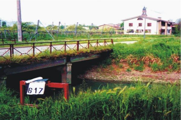 | materializzazione | Centrino metallico infisso sul cordolo della chiusa nei pressi del ponte sito in Via Mazza, Località Campegine. |