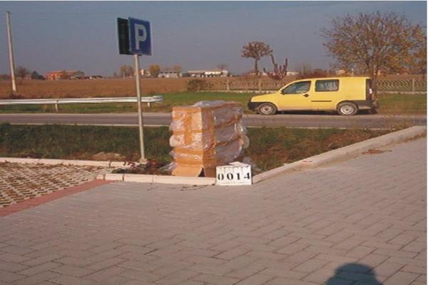 | materializzazione | Centrino metallico infisso sulla spalletta del ponticello di accesso al civico 127, lungo la strada Vallanza in località Baganzola, nel comune di Parma. |