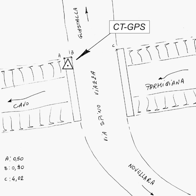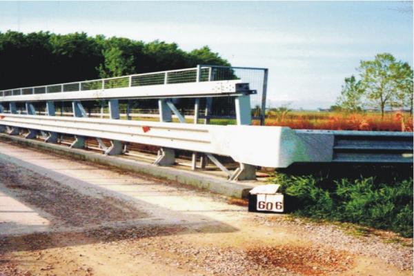 Centrino metallico infisso sulla spalletta in cemento del ponte sul fiume Cavo Parmigiana, situato nei pressi della Località San Giacomo nel Comune di Guastalla, in Via Spino Viazza.