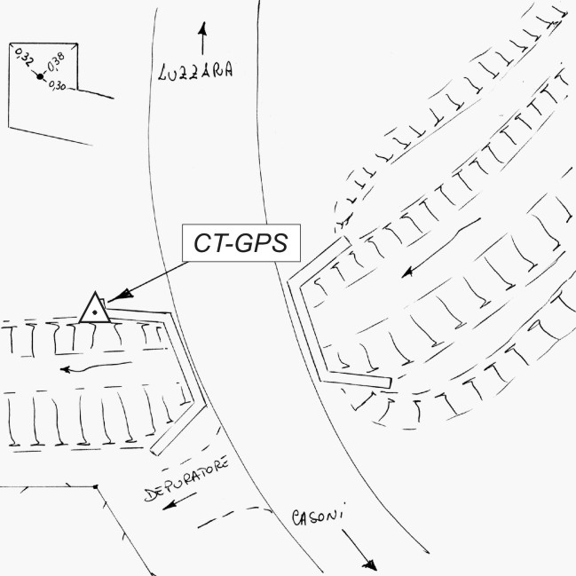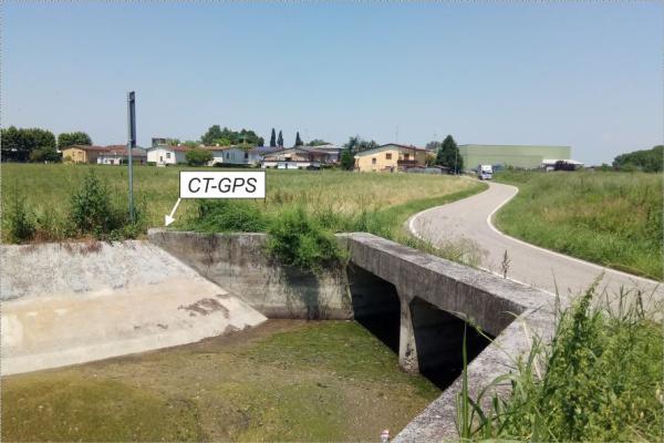 Centrino metallico infisso sul cordolo di una chiusa situata in prossimità del depuratore a est del paese di Luzzara.