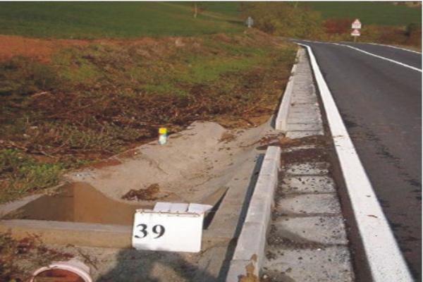 | materializzazione | Centrino metallico infisso sulla sommità del muretto in camento armato dello scolo delle acque stradali. |