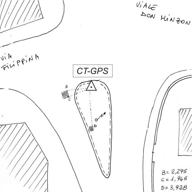 | materializzazione | Centrino metallico infisso sull'aiuola spartitraffico all'incrocio fra Viale Don Minzoni e Via Filippina, nel paese di Sissa. |