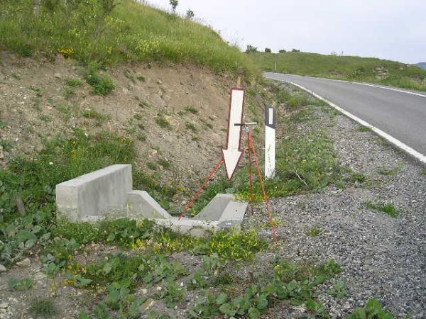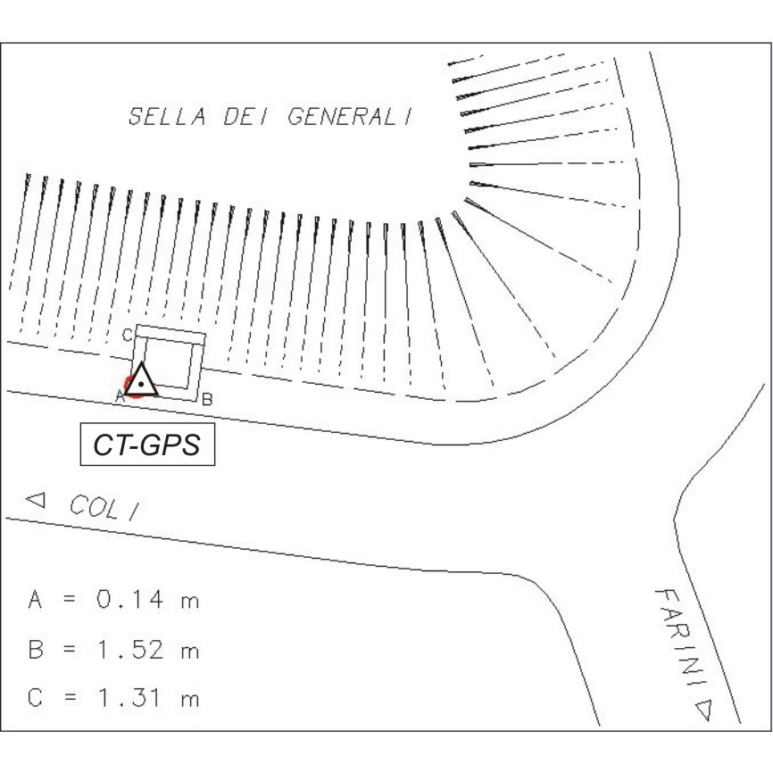 | materializzazione | Centrino metallico infisso sullo spigolo sud ovest di un grosso sifone situato presso il bordo nord della S.P. 57, in località "Sella dei Generali". |