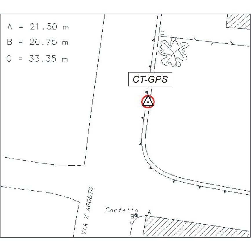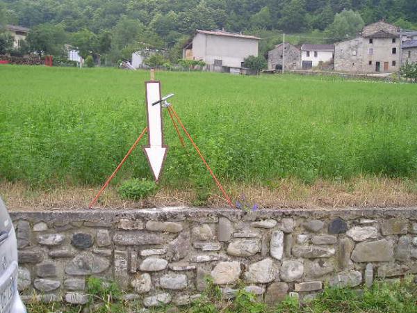 Centrino metallico infisso su muro di sostegno sul bordo est della strada in centro a Leggio.