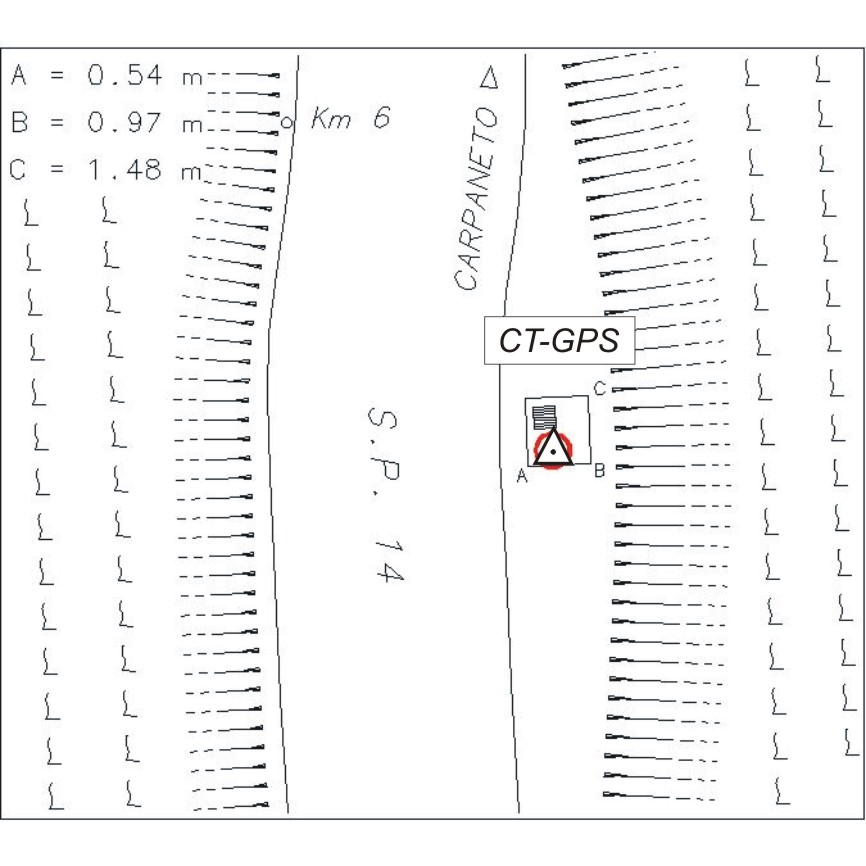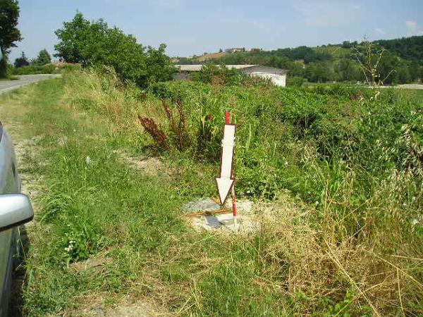 | materializzazione | Centrino metallico infisso su un grosso manufatto idraulico in cemento armato della tombatura del canale presso il bordo est della S.P. 14, circa 25 metri a sud del km 6. |