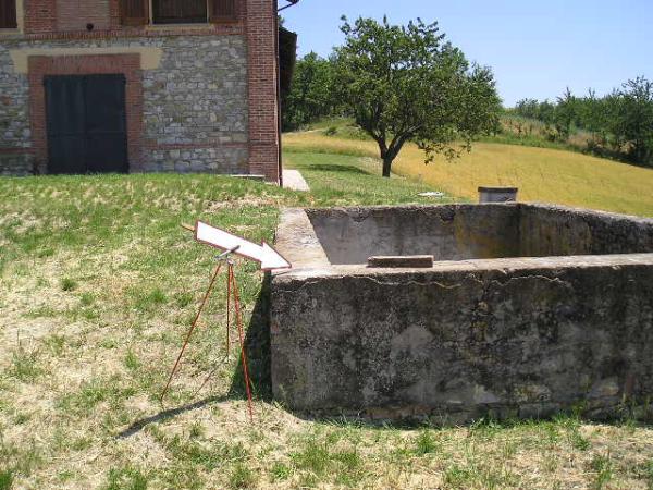 | materializzazione | Centrino metallico infisso sullo spigolo nord – ovest di una grossa vasca a Cà del Bulla. |