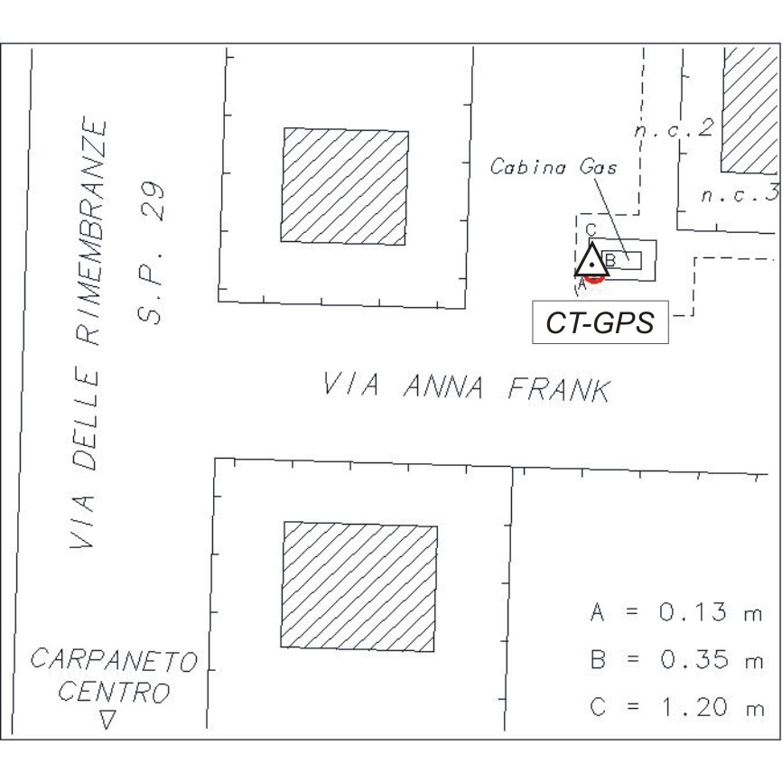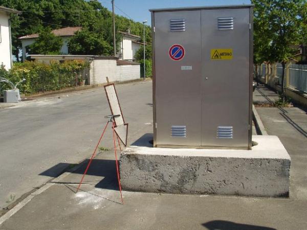 | materializzazione | Centrino metallico infisso sullo spigolo sud – ovest di un basamento in cemento armato di una cabinetta del gas. |