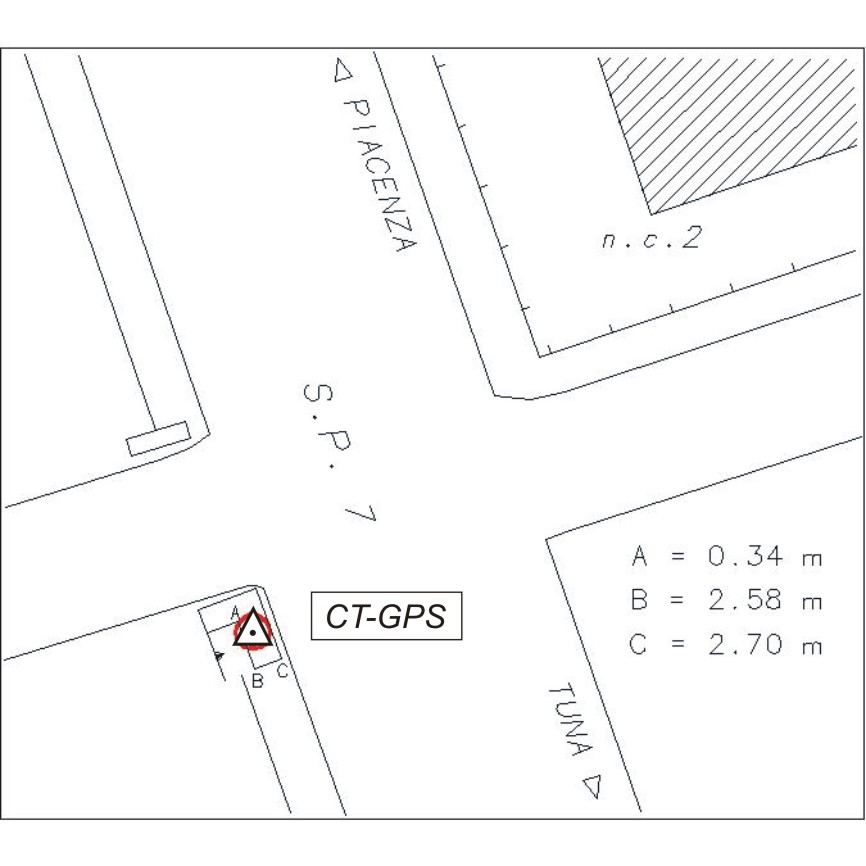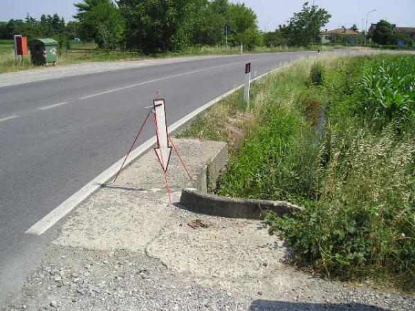 Centrino metallico infisso sulla soletta in cemento presso la spalletta sud del ponticello e sul bordo ovest della S.P. 7.