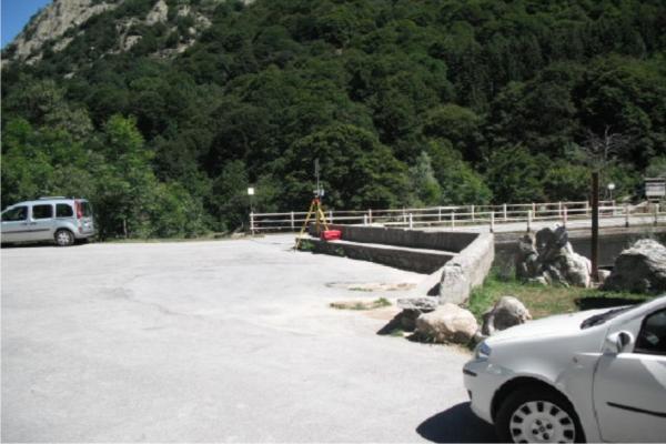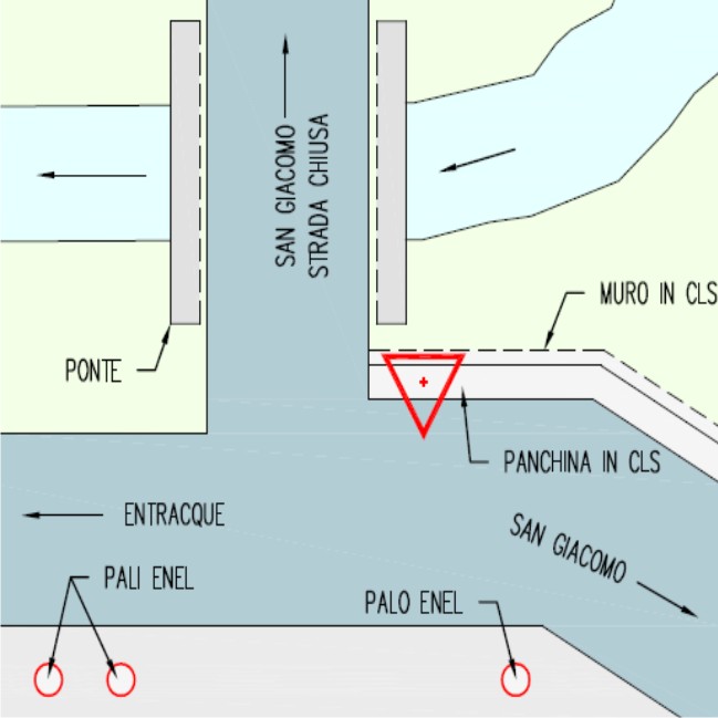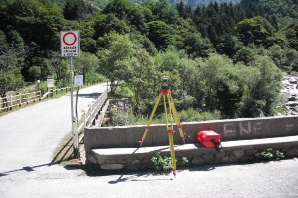 Centrino metallico del Ministero delle Finanze – Catasto di Cuneo infisso su muro d'argine del torrente Gesso, prima del ponte.
