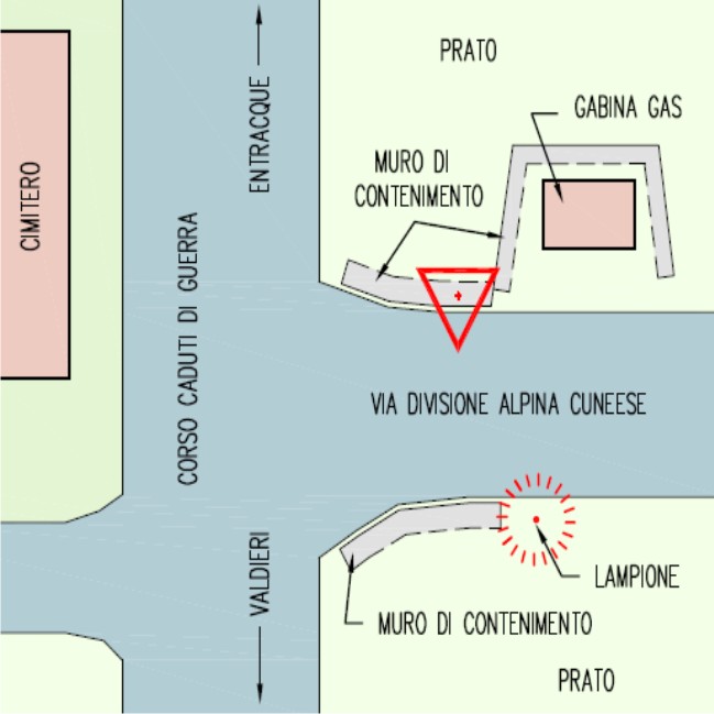 | Materializzazione | Centrino metallico del Ministero delle Finanze – Catasto di Cuneo infisso sul muro in cemento armato vicino alla cabina del gas. |