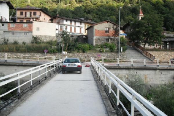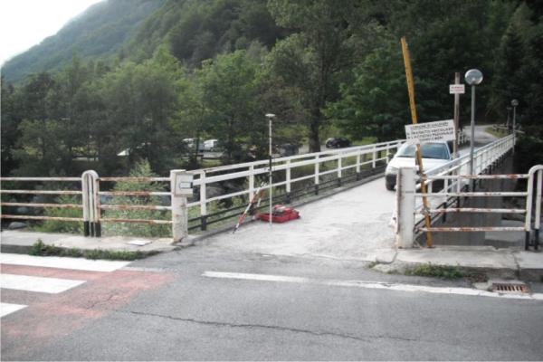 Centrino metallico della Regione Piemonte infisso sulla passerella pedonale sul fiume Gesso.