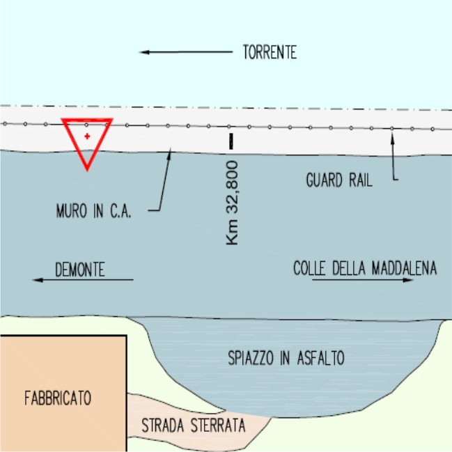 | Materializzazione | Centrino metallico della Regione Piemonte infisso sul muro di sostegno della strada lato sinistro. |