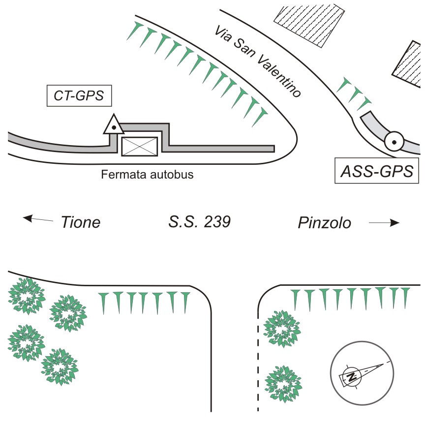 | Collegamenti | R 0195# ### 056P Punto Fiduciale del Catasto DH = 0,000 |