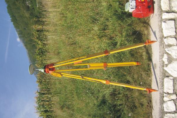 Centrino in acciao inox del tipo "GPS C" infisso sulla sommità del muro in pietra, a protezione del marciapiede, fra Via alle Pozze e Via dell' Agol.