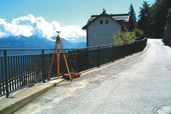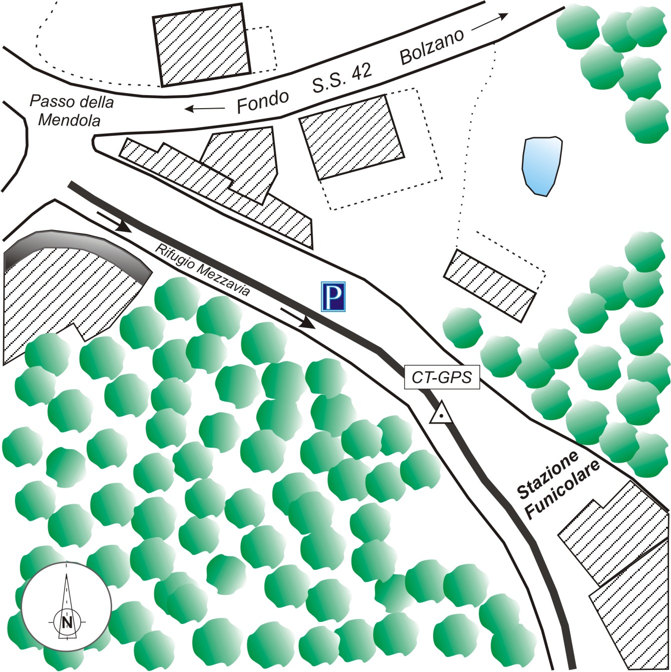 | materializzazione | Centrino in acciaio inox del tipo "GPS C" infisso sulla sommità del muro di sostegno in cemento armato della stradina che porta al Rifugio Mezzavia, in prossimità delle scalette che portano al piano della stazione d'arrivo della funicolare, sulla sinistra. |