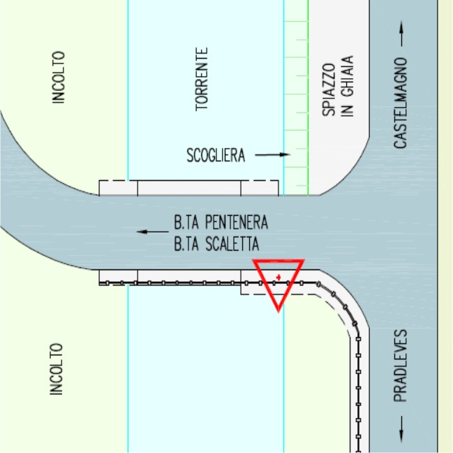 | materializzazione | Centrino metallico della Regione Piemonte infisso sul ponticello sull'incrocio. |
