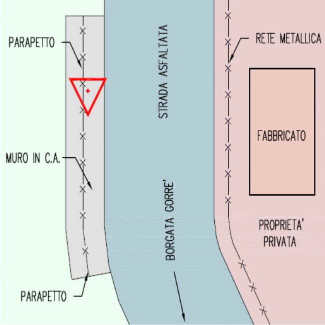 | materializzazione | Centrino metallico della Regione PIemonte infisso su muro in cemento armato lungo la starda, lato valle. |