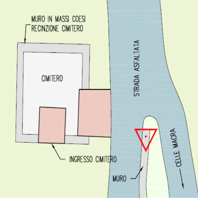 | materializzazione | Centrino metallico della Regione Piemonte infisso sul muro di sostegno a sinistra della strada prima del cimitero. |