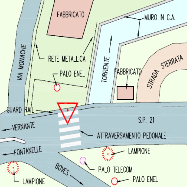 | materializzazione | Centrino metallico della Regione Piemonte murato su una platea in cemento armato del marciapiede subito dopo Via Monache. |